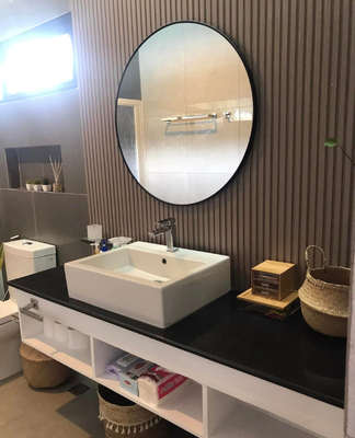 Experience a spa-like morning in our contemporary bathroom featuring a minimalist vessel sink and premium finishes.